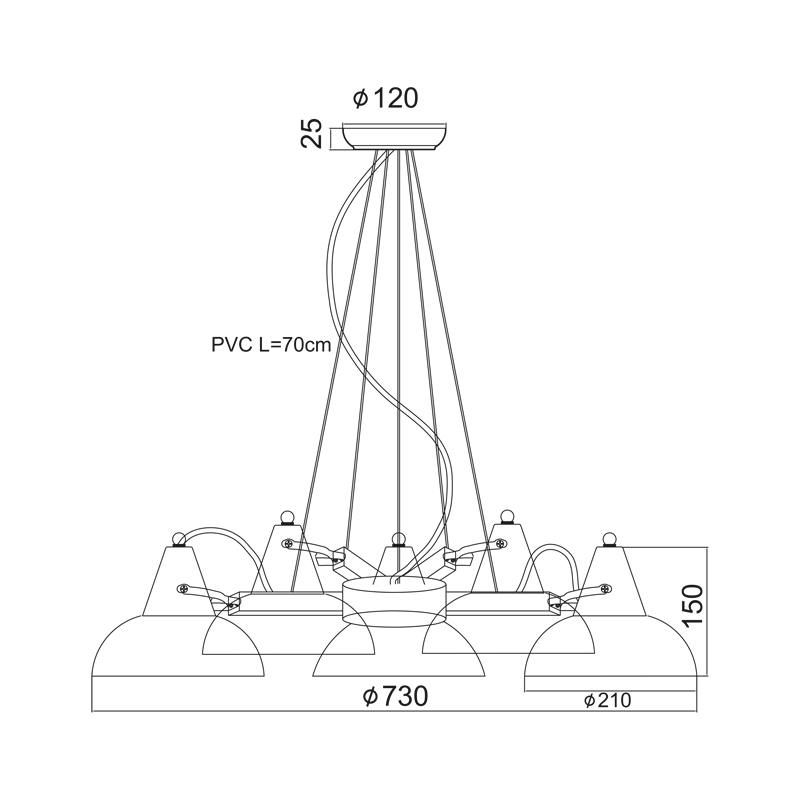 ΦΩΤΙΣΤΙΚΟ ΚΡΕΜΑΣΤΟ SOLON 5xE27 Φ.73cm N. KS2025P5BK ΜΕ ΠΕΡΙΣΤΡΕΦΟΜΕΝΟΥΣ ΒΡΑΧΙΟΝΕΣ ΤΗΣ ΕΤΑΙΡΕΙΑΣ ACA DÉCOR CENT_CHARACTERISTICS