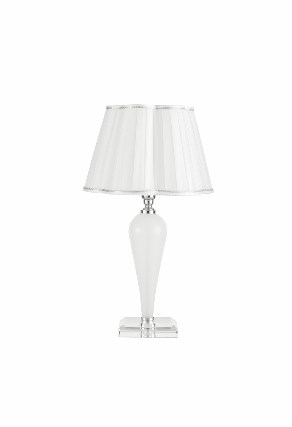 ΦΩΤΙΣΤΙΚΟ ΕΠΙΤΡΑΠΕΖΙΟ DEBUSSY ΜΕ ΛΕΥΚΟ ΧΕΙΡΟΠΟΙΗΤΟ ΓΥΑΛΙ, ΚΡΥΣΤΑΛΛΟ, ΜΕΤΑΛΛΙΚΕΣ ΛΕΠΤΟΜΕΡΕΙΕΣ ΧΡΩΜΙΟΥ ΚΑΙ ΛΕΥΚΟ ΥΦΑΣΜΑΤΙΝΟ ΚΑΠΕΛΟ E14 Φ.25cm N. LT.DEBUSSY TC.3057D25 ΤΗΣ ΕΤΑΙΡΙΑΣ ONDALUCE