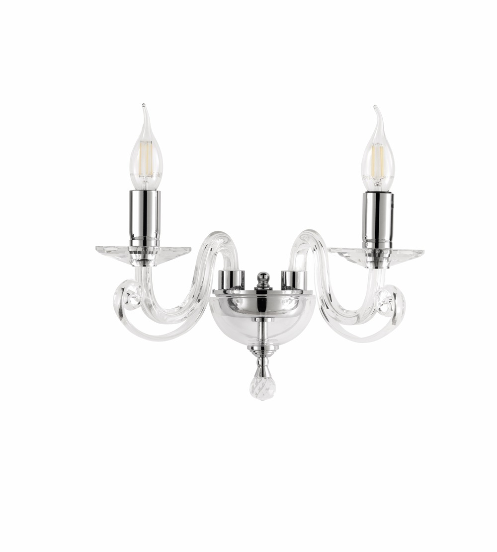 ΦΩΤΙΣΤΙΚΟ ΕΠΙΤΟΙΧΟ CHERUBINI ΜΕ ΛΕΥΚΟ ΧΕΙΡΟΠΟΙΗΤΟ ΓΥΑΛΙ ΚΑΙ ΛΕΠΤΟΜΕΡΕΙΕΣ ΧΡΩΜΙΟΥ 2XE14 17X26X30cm N. AP.CHERUBINI/2-CR ΤΗΣ ΕΤΑΙΡΙΑΣ ONDALUCE