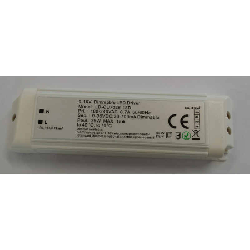ΤΡΟΦΟΔΟΤΙΚΟ LED ΣΤΑΘΕΡΗΣ ΕΝΤΑΣΗΣ AC100-240V 10-36VDC 700mA DIMMING 1-10VDC N. LD-CU7036-18D