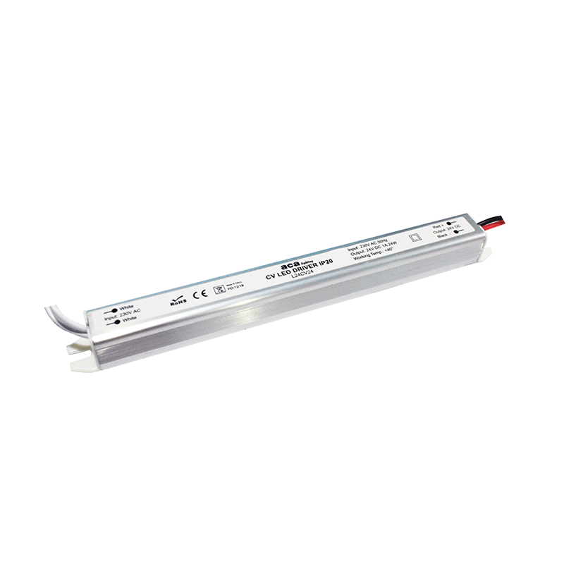 ^LINEAR METAL CV LED DRIVER 24W 230V AC-24V DC 1A IP20 WITH CABLES Ν. L24CV24 BY ACA LED LIGHTING CENT_CHARACTERISTICS