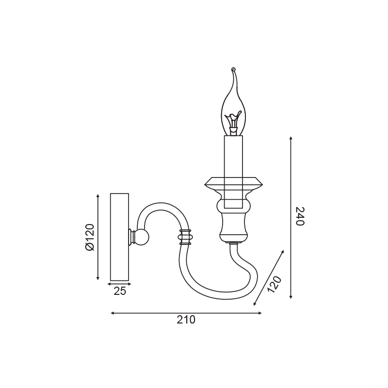 ΦΩΤΙΣΤΙΚΟ ΕΠΙΤΟΙΧΟ TOULOUSE E14 12x24cm N. EG171W12R ΤΗΣ ΕΤΑΙΡΕΙΑΣ ACA DÉCOR Χαρακτηριστικά