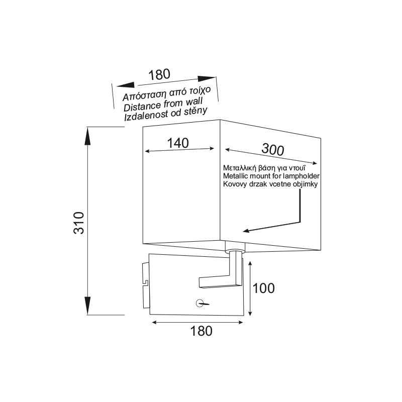 ΦΩΤΙΣΤΙΚΟ ΕΠΙΤΟΙΧΟ TITCHIANO E27 30x31cm N. V29232WBC ΜΕ ΔΙΑΚΟΠΤΗ ON/OFF ΤΗΣ ΕΤΑΙΡΕΙΑΣ ACA DÉCOR