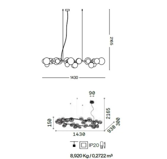 ΦΩΤΙΣΤΙΚΟ ΚΡΕΜΑΣΤΟ PERLAGE 30xG9 Φ.143cm Ν. 296746 ΤΗΣ ΕΤΑΙΡΙΑΣ IDEAL LUX Χαρακτηριστικά
