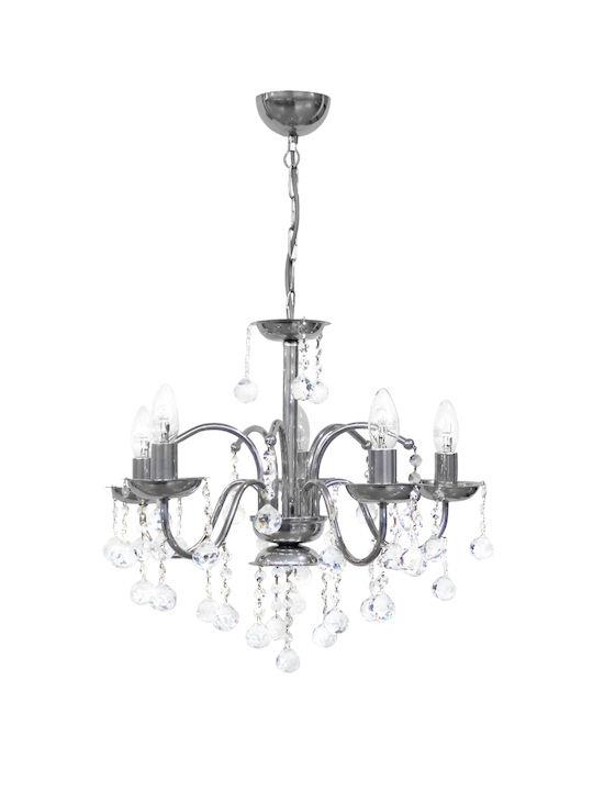 ΦΩΤΙΣΤΙΚΟ ΚΡΕΜΑΣΤΟ BISTRO 5L NIKEL ΠΟΛΥΦΩΤΟ ΚΕΡΙ ΜΕ ΚΡΥΣΤΑΛΛΑ 5xE14 Φ.55cm Ν. 01-0316