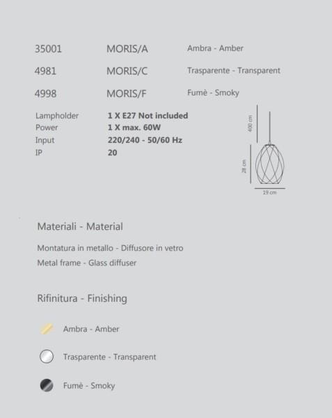 ΦΩΤΙΣΤΙΚΟ ΚΡΕΜΑΣΤΟ MORIS/C E27 Φ.19cm Ν. MORIS/C ΤΗΣ ΕΤΑΙΡΙΑΣ SIKREA
