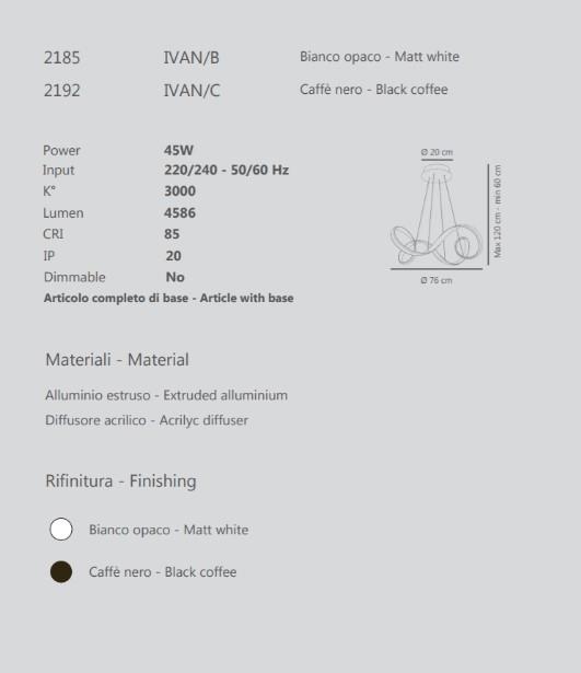 ΦΩΤΙΣΤΙΚΟ ΚΡΕΜΑΣΤΟ IVAN/C LED 45W 3000K Φ.76cm Ν. 2192-SIKREA