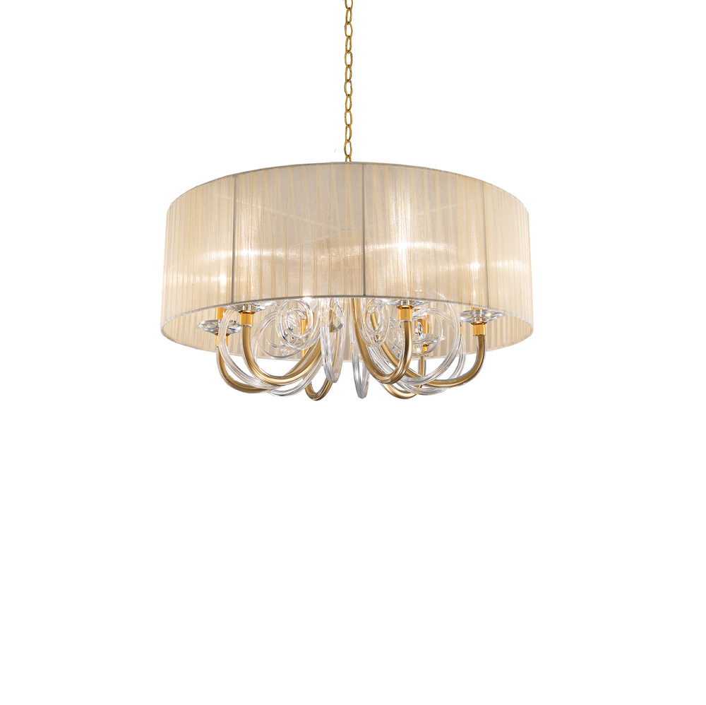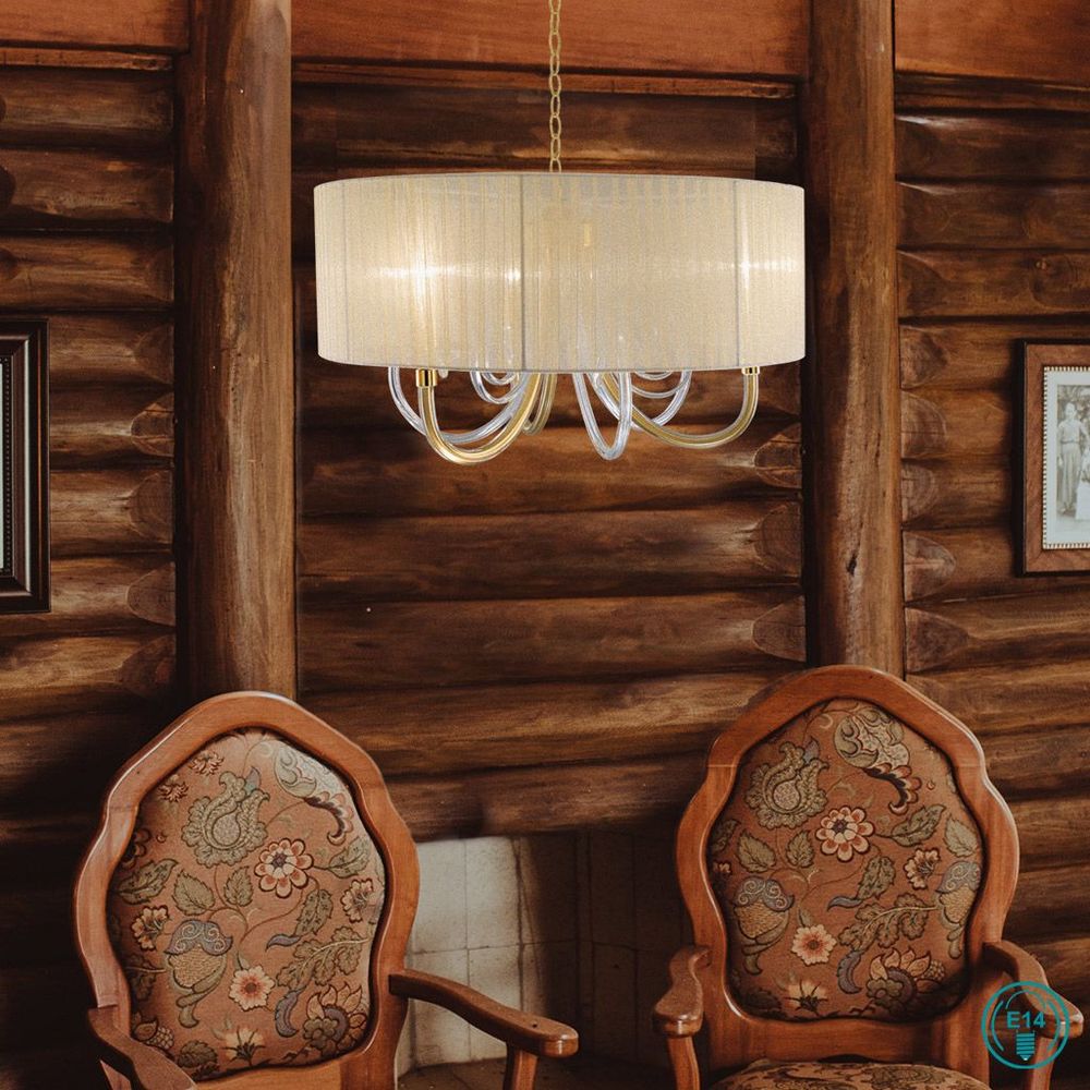 ΦΩΤΙΣΤΙΚΟ ΚΡΕΜΑΣΤΟ ΠΟΛΥΕΛΑΙΟΣ CASTRO 6XE14 Φ.70cm N. SO.CASTRO/6 ΤΗΣ ΕΤΑΙΡΙΑΣ ONDALUCE ΜΕ ΔΙΑΦΑΝΑ ΚΑΙ ΧΡΥΣΑ ΚΡΥΣΤΑΛΛΙΝΑ ΧΕΡΙΑ ΚΑΙ ΕΚΡΟΥ ΚΑΠΕΛΟ ΑΠΟ ΟΡΓΑΝΤΖΑ