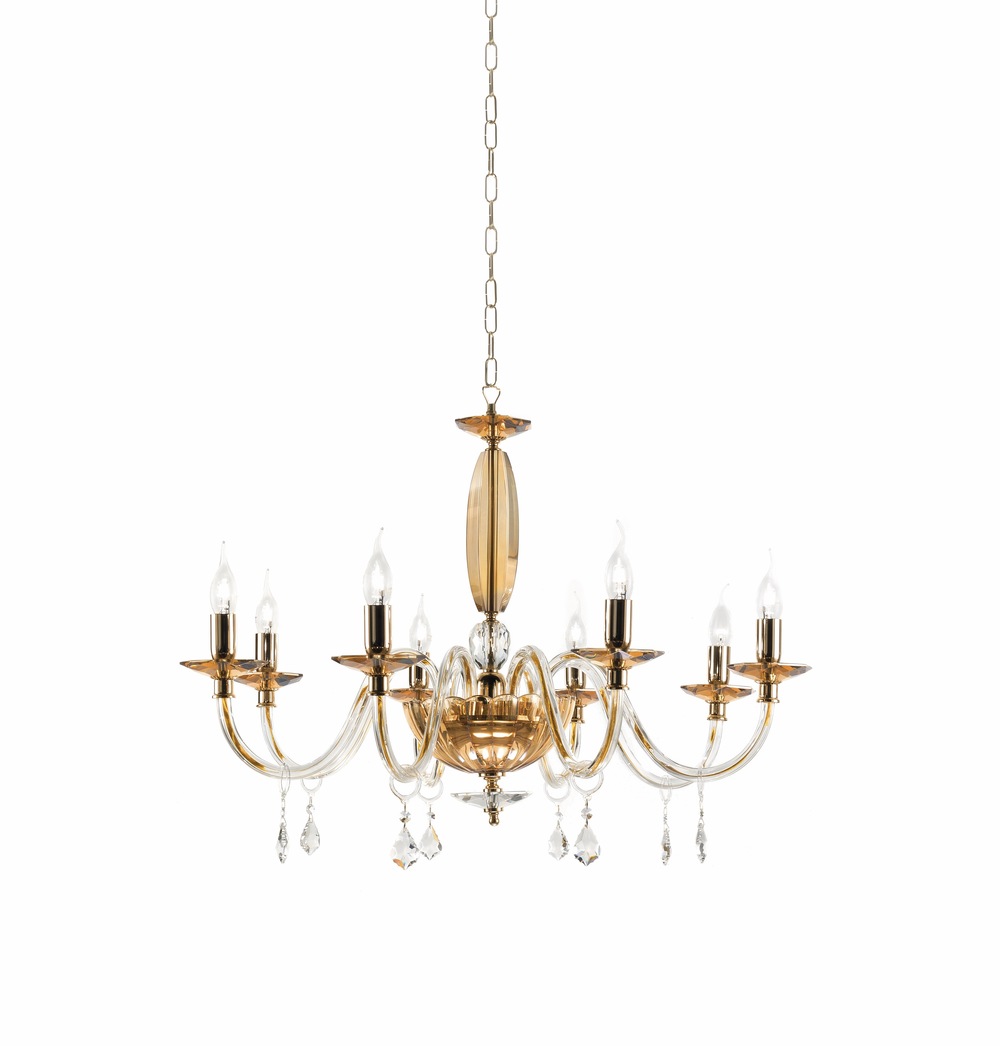 ΦΩΤΙΣΤΙΚΟ ΚΡΕΜΑΣΤΟ ΠΟΛΥΕΛΑΙΟΣ CECILIA ΜΕ ΜΠΕΖ ΓΥΑΛΙ, ΔΙΑΦΑΝΑ ΚΡΥΣΤΑΛΛΟ ΚΑΙ ΜΕΤΑΛΛΙΚΕΣ ΛΕΠΤΟΜΕΡΕΙΕΣ ΧΡΩΜΙΟΥ 8XE14 Φ.85cm N. LP.CECILIA/8-TORT ΤΗΣ ΕΤΑΙΡΙΑΣ ONDALUCE